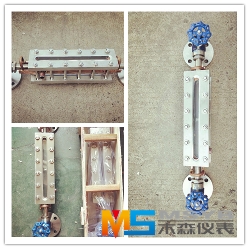 儀表在上下閥上都裝有M27×1.5或ZG3/4"的螺紋接頭,通過法蘭與容器連接構成連通器,透過玻璃板可直接讀得容器內液位的高度