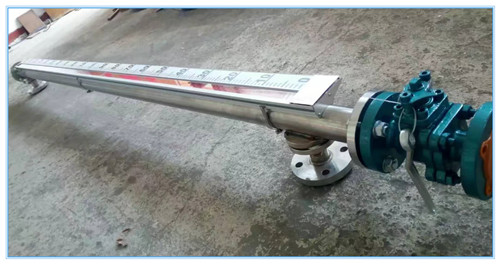 4、液位計投入運行時應先打開下引液管閥門讓液體介質平穩(wěn)進入主體管,避免液體介質帶著浮球組件急速上升,而造成翻柱轉失靈和亂翻。若發(fā)生此現(xiàn)象待液面平穩(wěn)后可用磁鋼重新校正。