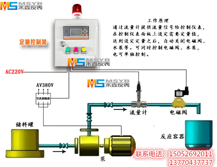 定量控制器系統(tǒng)是由流量計(jì)、流量定量控制儀、電磁閥和配電箱等裝置組成。