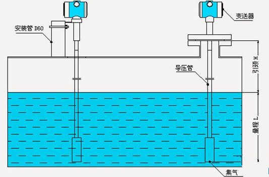 2、在介質(zhì)波動較大,導(dǎo)氣電纜很長的情況下,對探頭應(yīng)采用套筒將其固定,以防探頭擺動而影響測量精度。