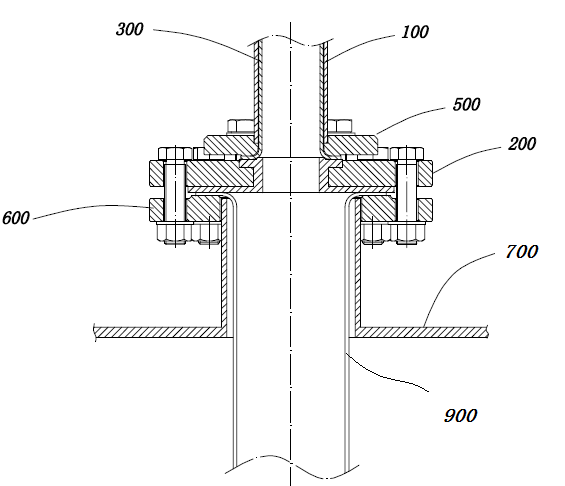 針對傳統(tǒng)頂裝式磁翻板液位計的這些弊端,在多次試驗的基礎(chǔ)上,對現(xiàn)有的內(nèi)襯工藝與結(jié)構(gòu)做了改進,發(fā)明了頂裝式磁翻板液位計的一種新工藝及其結(jié)構(gòu),如下圖所示,其提供了*先連接件和連接內(nèi)襯。該連接內(nèi)襯具有用于連通內(nèi)襯連接口的*先連接口、自*先連接口向外成環(huán)形設(shè)置的*先密封部、用于與被測容器連通的二連接口和自二連接口向外成環(huán)形設(shè)置的二密封部。由于該*先連接件和連接內(nèi)襯為單獨設(shè)置,可以單獨制造,因此*先密封部和二密封部可以制作的足夠大,從而實現(xiàn)*先密封部與浮筒內(nèi)襯的翻折部密封抵接;同時,連接內(nèi)襯的二密封部用于與容器實現(xiàn)密封連接。由此,該連接內(nèi)襯可以與浮筒內(nèi)襯和容器開口內(nèi)的護筒形成密封的連接,從而避免連接處的金屬面受腐蝕,使安全順利地進行,免受因發(fā)生安全事故對生命和財產(chǎn)造成的安全威脅。